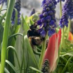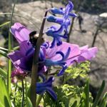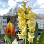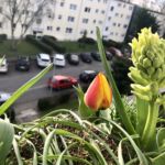 Inzwischen sind Krokus und Schneeglöckchen schon lange verschwunden, aber die Hyazinthen und Kegelblumen endlich aufgeblüht, sowie Tulpen und Anemonen. Was noch fehlt, sind die Narzissen und der Zierlauch. Seit ein paar Tagen blüht auch der Nelkenwurz schön krachig orange. Und überall summt es. Inzwischen habe ich auch schon die erste Honigbiene gesichtet, nachdem Wildbienen und Hummeln schon mehrere Wochen aktiv sind.