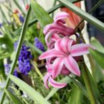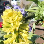 Leider haben sich die als orange verkauften Hyazinthenzwiebeln als blass-gelb blühend entpuppt. Das passt aber auch ganz gut. Von den Stauden blüht seit Mitte Februar bereits der Rosmarin. Nelken, Besenheide, Hornveilchen und Stiefmütterchen haben sowieso den ganzen Winter durchgeblüht.