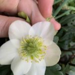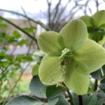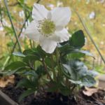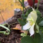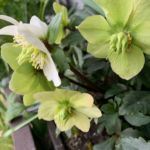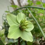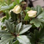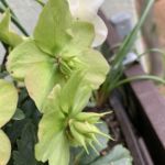 Eine lachsfarben blühende Lenzrose mit violett geaderten Blättern war eine unserer ersten Balkonpflanzen. Sie wächst seit einigen Jahren bei meinen Eltern auf der Terasse, erst in Ludwigshafen, dann in Mannheim. Bei guter Pflege können Hellebori 30 Jahre alt werden. Für unsere Kästen wurde sie zu groß. Seit letztem Herbst haben wir drei Zwerg-Schneerosen, von denen eine in ein Adventsgesteck zu Andreas nach Siegburg wanderte und zwei auf dem Schattenbalkon blühen. Beim Verblühen werden die Blüten grün und bekommen dicke Schnäbel.
