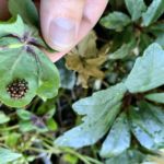 Sie sahen käferartig aus, aber nicht wirklich wie Marienkäfer und schon gar nicht wie deren Larven, deren Form ja zuerst kommt. Trotzdem habe ich das Kleeblatt auf dem Schattenbalkon abgebrochen und auf dem Sonnenbalkon schön zentral in den belausten Schnittlauchhorst gesteckt. Nach einer Weile habe ich aber doch mal ein bisschen recherchiert. Wie sich herausstellt, waren das doch keine Marienkäfer, sehr schade, sondern wohl die Larven von Marmorierten Baumwanzen, welche ebenfalls Pflanzen fressen. Naja, also habe ich den Kleinen, die sich noch ganz brav auf der Unterseite des Kleeblatts befanden, mal eben, naja, über die Brüstung… geholfen, können sie unten im Vorgarten die Pflanzen anfressen.