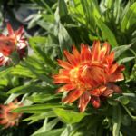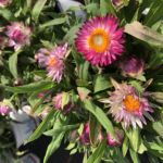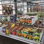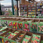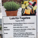Bei den Gewürzen schaue ich auch immer gern vorbei. Die letzten beiden Male durfte ein dreifarbiger Salbei, ein neuer Zitronenthymian (weil unserer inzwischen total verholzt ist), ein Ysop, weil der eine tolle Bienenweide ist und annähernd blau blüht, und eine Lakritztagetes (Tagetes filifolia) mit, die wirklich wunderbar lakritzig nach Anis schmeckt, viel mehr als unsere Gewürztagetes (Tagetes tenuifolia), die doch davon verschieden ist. Außerdem habe ich aus der Kräuterabteilung auch noch ein Unsterblichkeitskraut mitgenommen, weil es interessant schmeckt und hübsche Blätter an langen Ranken hat. Wie die Lakritztagetes kommt es im Herbst ins Zimmer, weil es bei uns nicht winterhart ist.