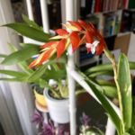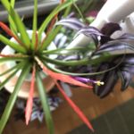 Später habe ich mir immer mal wieder eine Tillandsie gekauft. Wenn sie blühen, sehen sie schon sehr schick aus. Meist habe ich sie dann aber vergessen. Die sind halt so klein und brauchen kaum Pflege. Aber wenn man sie gar nicht besprüht oder wässert, vertrocknen sie doch und sind hinüber. Inzwischen habe ich wieder fünf Tillandsien. Zwei sind getopft und sammeln Wasser in ihrem Blatttrichter wie die mit ihnen verwandten Bromelien, drei sind topflos. Eine davon ist auf einen Ast aufgebunden. Sie stammt aus dem Botanischen Garten Heidelberg. Hier ein paar Bilder. Die Cyaneas waren nur auf der Durchreise und wachsen inzwischen bei den Schwiegereltern.