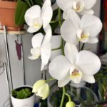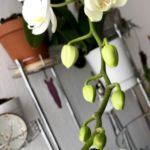 Da wir im Winter wenig heizen, blühen alle Schmetterlingsorchideen sehr zuverlässig immer wieder neu. Und inzwischen mache ich mir nicht mehr so viel Gedanken bzgl. spezieller Töpfe oder besonders weichem Wasser. Meine Riesenorchidee fühlt sich seit einem Jahr in einem normalen Tontopf wohl und unser bergisches Leitungswasser ist wunderbar.