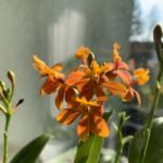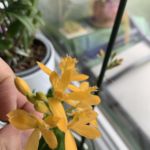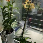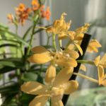 Rosa mag ich nicht so und habe dennoch schon so viele rosablühende Orchideen. Also durften eine orangefarbene und eine gelbe Sternorchidee mit. Anders als meine übrigen Orchideen, außer den zwei Kapuzenorchideen, mögen Epidendren viel Wasser und volle Sonne. Das passt ganz gut, denn die Schattenplätze in unserer Wohnung sind schon ziemlich rar geworden.