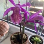 Dann habe ich aber bei den Schwiegereltern Pleionen entdeckt und welche abbekommen, bereits blühend! Jetzt stehen sie in Tontöpfen in einer Mischung aus Sphagnummoos und Karnivorenerde in meinem Zimmer. Es handelt sich wohl um die Sorte Tongariro.