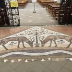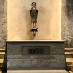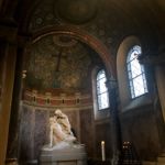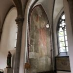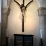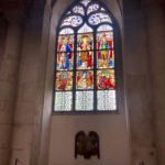 Wir kamen gerade pünktlich zum Mittagsgebet der dort ansässigen Fraternité de Jerusalem in der Kirche an. Die Texte, Lesungen und Kurzmediationen, waren natürlich alle auf Deutsch, was meinen Tanten nicht verstanden, aber die wunderschönen vielstimmigen Gesänge entschädigten sie dafür, hoffe ich. Ich war zum allerersten Mal dabei. Die Lieder erinnerten mich an Taizé und wie in Taizé waren die Brüder (und hier auch Schwestern) in weiße Kutten gekleidet. Nach dem Gebet konnten wir noch die Kirche besichtigen und dabei auch Heiligen-Darstellungen des serbisch-deutschen Künstlers Nikola Sarić anschauen, die zurzeit in der schlichten Kirche ausgestellt sind.